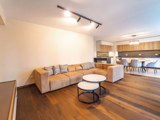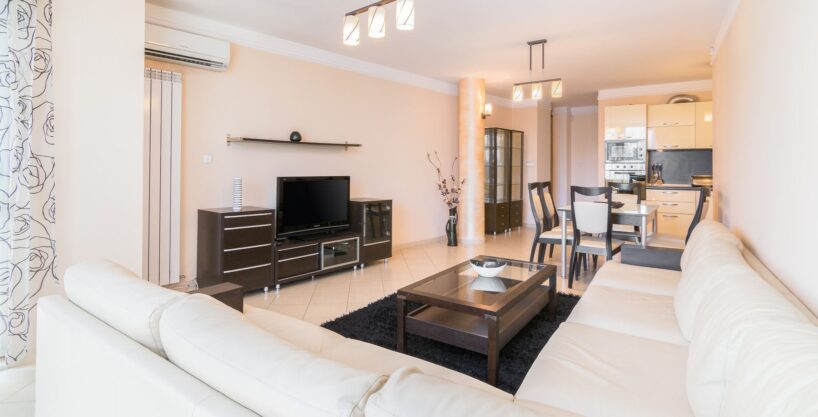 Fully furnished apartment near the metro station James Boucher. It consists of: entrance hall, lounge with dining area and fully equipped kitchen, two bedrooms, bathroom with shower, laundry room. Central heating. Air conditioning. Alarm system. Parking space in underground garage – 100 euro per month.